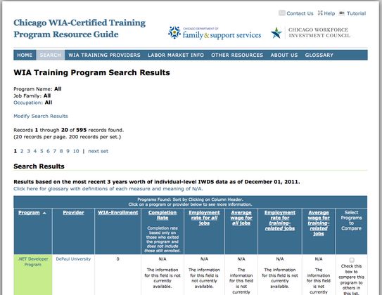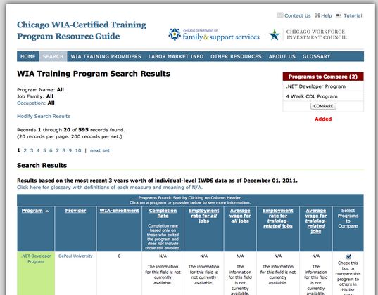 Section 508 Compliant; Zip Code (within X miles of a Zip Code) radius search; jQuery nested form to select items to compare; compare selected items grid; review stars; uses the LassoFusebox framework.