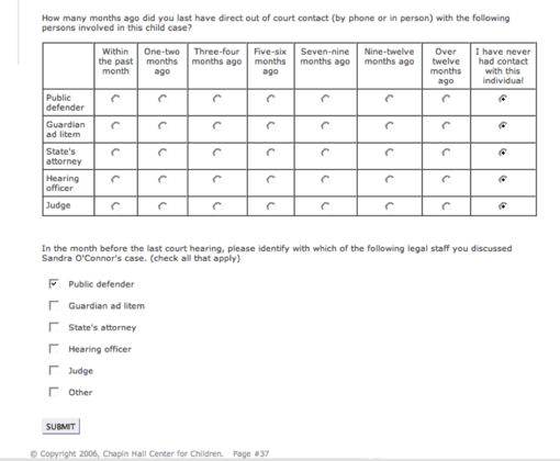 Chapin Hall Center for Children manages vast amounts of data for their research projects. One yearly project they conduct is a survey of over 1000 users. The survey's complexity is in its branching logic. Instead of making user walk through dozens of questions that are not relevant to them, Creative Computing helped them implement logic that fed users questions based on relevancy.